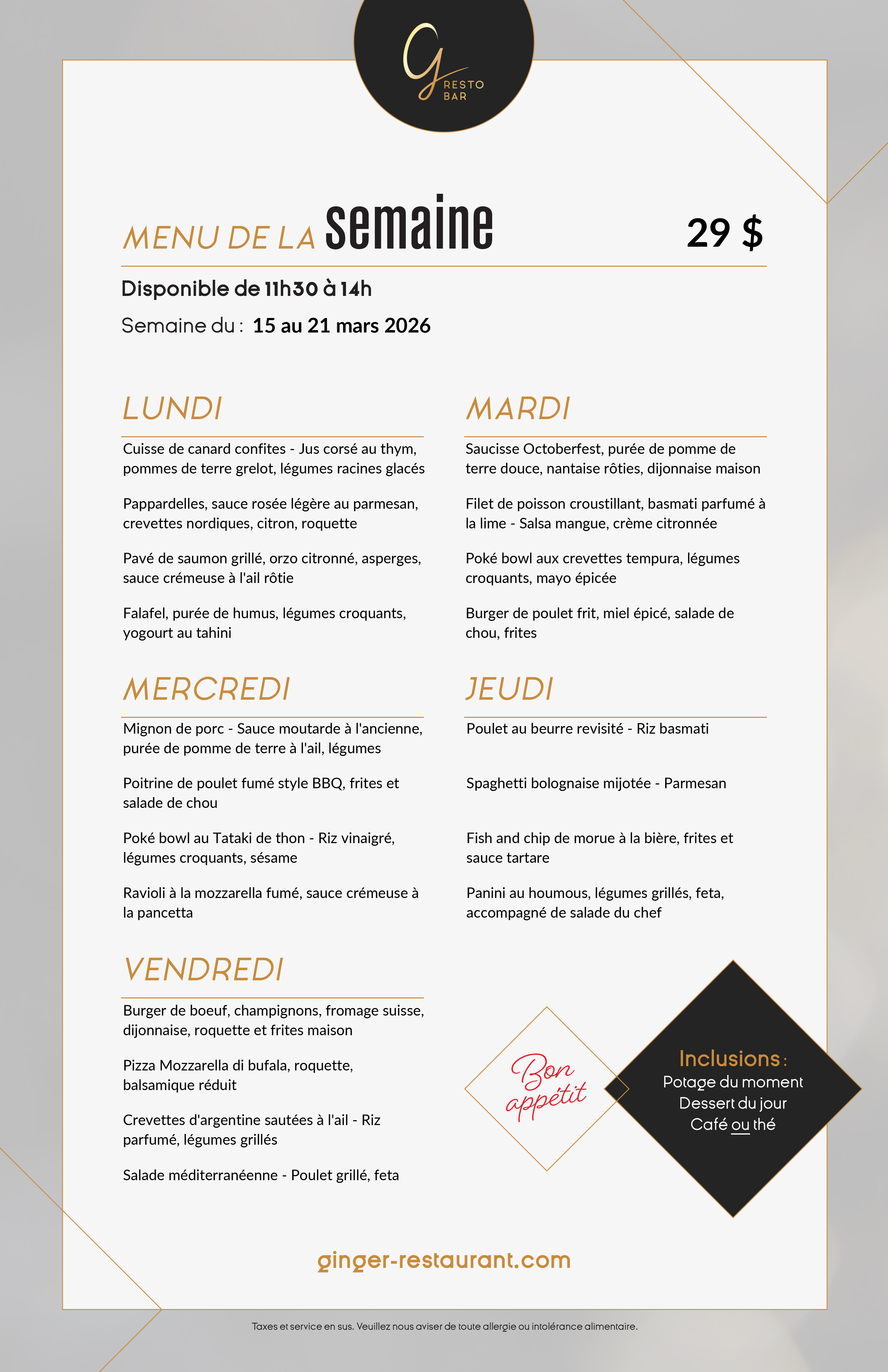 *Our Breakfast Buffets are offered on Saturdays only, and on Sundays as part of the Brunch Bulles et Band package.